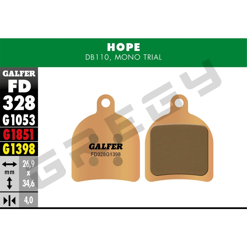 Galfer poskytuje viacero typov zmesí brzdových doštičiek, ktoré sú špecifické pre vonkajšie podmienky alebo sektor cyklistiky.